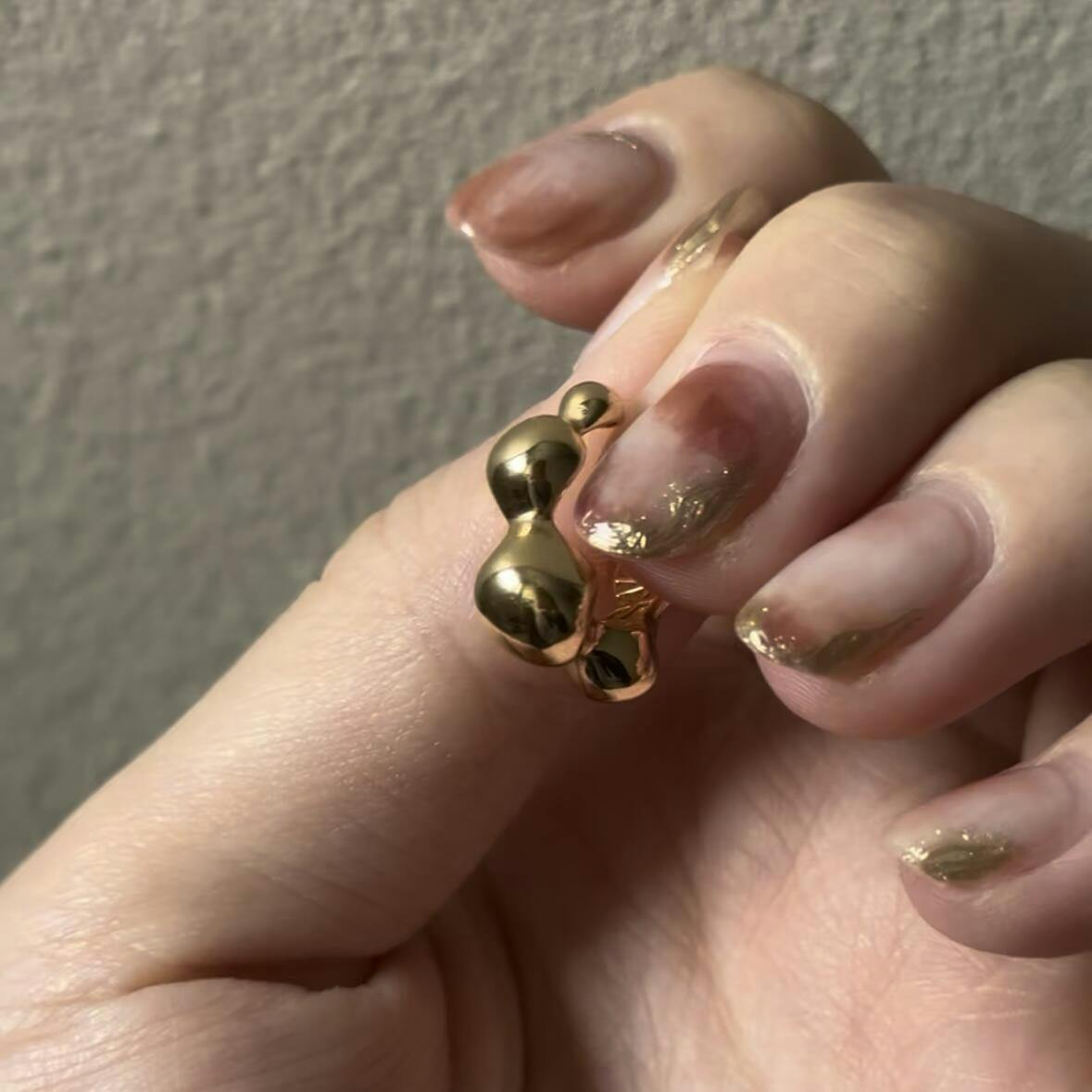 泡立つバブルのような形状のゴールドのイヤーカフ。